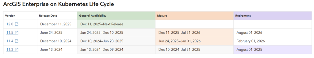 Bron: https://support.esri.com/en-us/products/arcgis-enterprise-kubernetes/life-cycle
