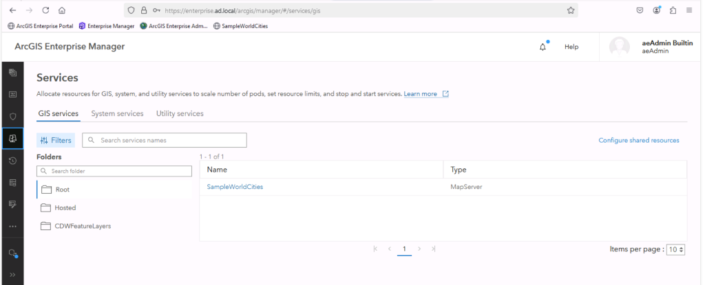 Een derde verschil is ArcGIS Enterprise Manager zelf. Dit is dé centrale beheerinterface voor GIS-admins. Je kan er onder meer SSL-certificaten uploaden, backups nemen en terugplaatsen, logs raadplegen, GIS-services beheren en updates of upgrades uitvoeren. Taken die bij ArcGIS Enterprise op Windows- of Linux-deployments verspreid zitten over verschillende beheertools, komen hier samen in één interface.